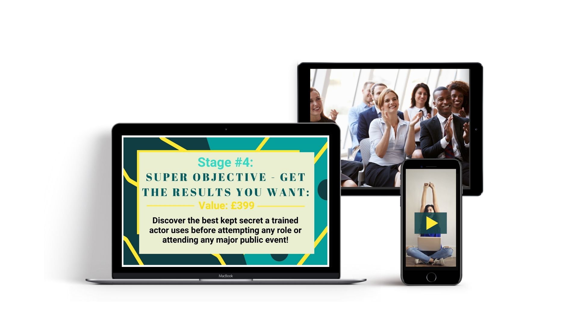 Experience and practise the BIGGEST acting trade secrets for the most effective type of rehearsal, so you can re-enact your presentation time and time again without needing a prompt (forgetting what you were saying) and keep your talk colourful and interesting EVERY time you do it